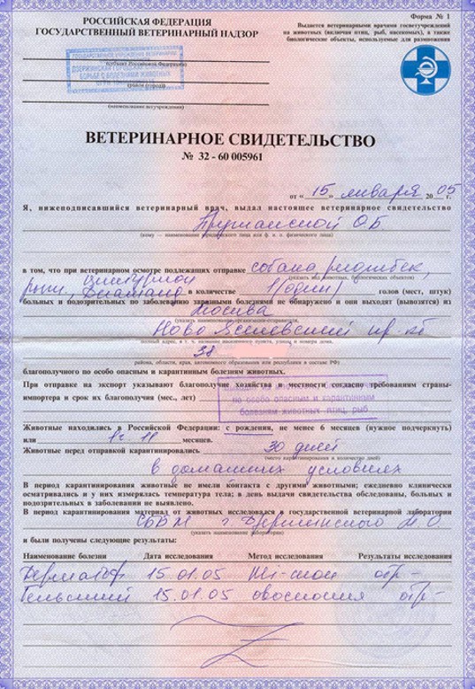 В нашем центре оформляют ветеринарные справки на утвержденном бланке, снабженном всеми необходимыми защитными элементами, включая голограммы. Клиенты после согласования условий заказа получают настоящую ветеринарную справку, которая выдержит любую проверку.